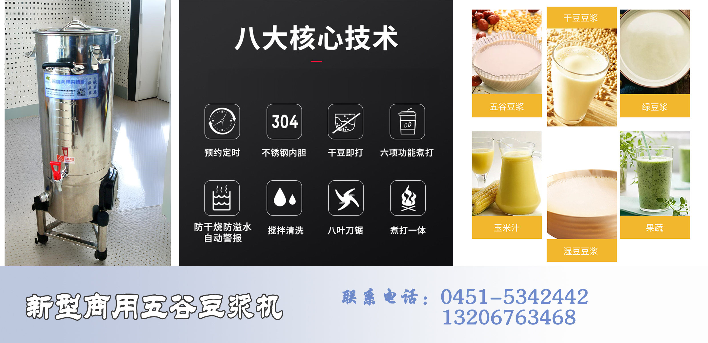 《哈爾濱市盛迪鑫金豆不銹鋼機(jī)械設(shè)備有限公司》主要經(jīng)營(yíng):豆制品加工生產(chǎn)設(shè)備、酒店廚房設(shè)備和不銹鋼機(jī)械設(shè)備制造等,公司根據(jù)客戶需求,結(jié)合國(guó)內(nèi)外同類產(chǎn)品的先進(jìn)經(jīng)驗(yàn),以不斷更新研制產(chǎn)品自動(dòng)化為主,讓用戶使用上先進(jìn)、衛(wèi)生、可靠的生產(chǎn)設(shè)備。2010年公司(豆腐機(jī)、豆?jié){機(jī)、煮漿機(jī)系列產(chǎn)品),榮獲:CHC高科技質(zhì)量監(jiān)督委員會(huì)《監(jiān)督檢測(cè)合格*質(zhì)量信得過(guò)產(chǎn)品》的稱號(hào);2011年被評(píng)為我市的十佳創(chuàng)業(yè)之星,2016年《盛迪鑫金豆》被評(píng)選為哈爾濱市商標(biāo)。